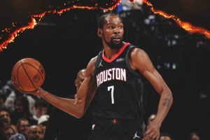賽后火箭官方發(fā)布贏球海報(bào),本場(chǎng)迎來復(fù)出的杜蘭特登上封面!