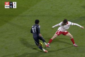 這次判罰存在雙重爭議:首先犯規(guī)地點恰在禁區(qū)線上,若判罰犯規(guī)本應是皇馬的點球。此外上半場皇馬還有一粒進球因姆巴佩射門前明顯手球而被判無效。