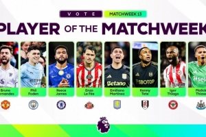 體育資訊12月2日訊 英超官方公布了第13輪最佳球員的八人候選名單,B費(fèi)、福登、里斯·詹姆斯等人入選。