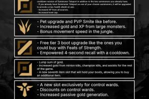 中路獲得一個免費的3階鞋子升級,類似之前搶占先機提供的可購買升級。此外,中路還會獲得強化的4秒回城技能(有冷卻時間)。部分3階鞋子有所調(diào)整,但大部分與目前的版本類似。