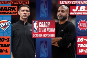 體育資訊12月3日訊 今日NBA官方公布了10-11月東西部月最佳主帥,雷霆主帥戴格諾特與活塞主帥比克斯塔夫當(dāng)選。