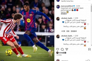 拉什福德社媒曬出比賽照片,并寫道:“重要的勝利,出色的團隊表現(xiàn)。加油!”