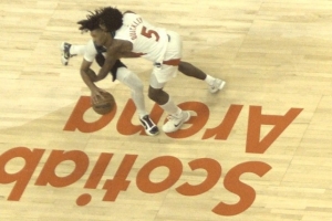 GIF-夏普突破失誤,開拓者挑戰(zhàn)成功,變成奎克利犯規(guī),夏普兩次罰球