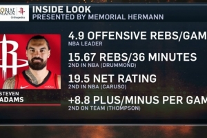 火箭主場(chǎng)迎戰(zhàn)國(guó)王,轉(zhuǎn)播方曬出亞當(dāng)斯數(shù)據(jù):