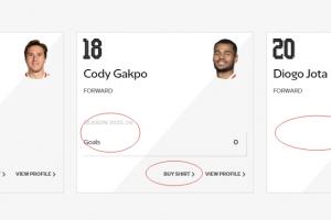 利物浦官網(wǎng)的球員列表,仍保留若塔的資料,但是僅有簡介,沒有數(shù)據(jù)顯示和球衣購買選項(xiàng)。