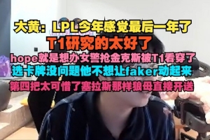 大黃:LPL今年感覺最后一年了,T1研究的太好了,hope就是想辦女警搶金克斯被T1看穿了,選卡牌沒問題他不想讓faker動起來,第四把太可惜。
