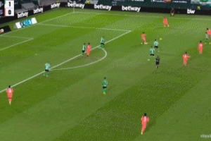 兩分鐘后巴德吉助攻,費(fèi)蘭凌空側(cè)鉤破門完成雙響,巴薩反超比分,2-1貝蒂斯!