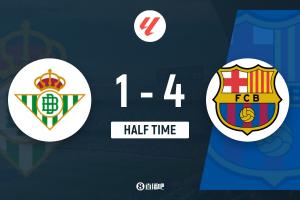 體育資訊12月7日訊 北京時間1:30,西甲第15輪皇家貝蒂斯vs巴塞羅那,比賽在塞維利亞奧林匹克體育場打響!上半場,安東尼破門幫助貝蒂斯取得領(lǐng)先,但隨后費蘭·托雷斯2分鐘2球?qū)⒈确址闯?!佩德里助攻巴德吉再下一城;費蘭遠射破門完成帽子戲法!半場結(jié)束,巴薩暫時4-1領(lǐng)先貝蒂斯。