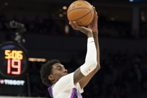 談及麥克丹尼爾斯中距離投籃的出色表現(xiàn),芬奇表示:“他具備絕佳的身高條件,手感非常柔和,投籃弧線很高。他擁有一名優(yōu)秀中距離射手的所有特質(zhì) —— 能穩(wěn)定找到自己的投籃點(diǎn),動(dòng)作從容可控,彈跳能力出色,起跳后很難有人能干擾到他的投籃。”