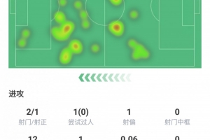射門(mén)2次射正1次,嘗試過(guò)人1次,丟失球權(quán)12次,約為1次,預(yù)期進(jìn)球0.06球