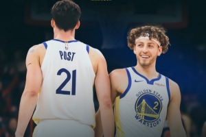 賽后勇士官方曬出本場(chǎng)贏球海報(bào),封面人物是波杰姆斯基和波斯特。