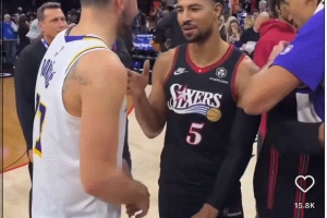 賽后,東契奇和前隊友格萊姆斯寒暄幾句。