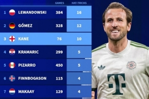 體育資訊12月9日訊 德國轉(zhuǎn)會市場盤點了21世紀德甲球員帽子戲法次數(shù)排名,凱恩10次已經(jīng)來到第三位。