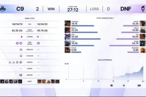 體育資訊12月9日訊?在剛剛結(jié)束的Kespa杯LCQ最后機(jī)會組的比賽中,C9以2-0橫掃DNF。隨后將進(jìn)行LCQ組最后一場比賽由DNF對陣NS。
