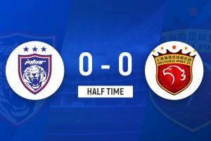 上半場比賽結(jié)束,上海海港0-0柔佛新山。