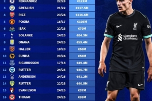體育資訊7月12日訊 德轉(zhuǎn)盤點(diǎn)了英超20支球隊(duì)隊(duì)史引援轉(zhuǎn)會(huì)費(fèi)標(biāo)王,其中維爾茨1.25億歐領(lǐng)銜,恩佐、格拉利什在列,具體如下: