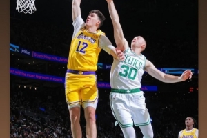 此前打凱爾特人拉拉維亞搶斷反擊一條龍,起飛滑翔單臂劈扣。湖人新秀蒂耶羅今日在INS調(diào)侃道:“這我見過(guò)他跳得最高的一次。??”