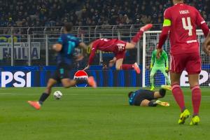 體育資訊12月10日訊 國米vs利物浦第13分鐘,勞塔羅滑鏟鏟飛羅伯遜,裁判出示黃牌。