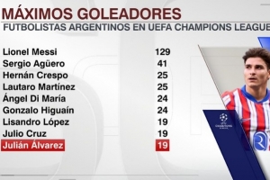 體育資訊12月10日訊 在本輪歐冠馬競(jìng)3-2擊敗埃因霍溫的比賽中,阿爾瓦雷斯破門。這也是他在歐冠第19球,以下為阿根廷球員在歐冠射手榜: