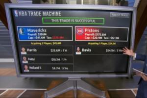 ESPN薪資專家Bobby Marks據(jù)此報道進(jìn)行模擬交易,濃眉奔赴活塞,獨(dú)行俠得到托拜亞斯·哈里斯+艾維+霍蘭三將。