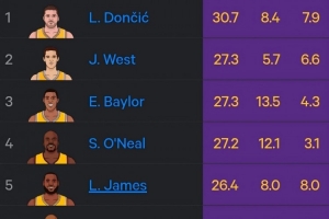 1、東契奇 場均30.7分
