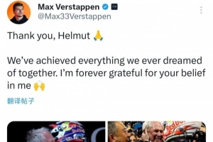 維斯塔潘更新了個人社媒,曬出了自己與馬爾科的合照并配文:謝謝你,赫爾穆特。我們在一起實現(xiàn)了所有的夢想,我將永遠感激你對我的信任。