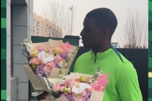 今天,法比奧特地找到訓(xùn)練基地負責(zé)洗衣的工作人員邵紅和陳玉敏,向兩位大姐獻花,感謝她們無微不至的照顧。??????