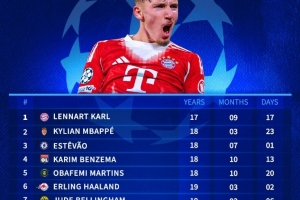 體育資訊12月10日訊 在本輪歐冠拜仁3-1擊敗葡體的比賽中,卡爾破門,也成為歐冠最年輕連續(xù)3場進(jìn)球球員。以下為自92/93賽季歐冠改制以來最年輕連續(xù)3場破門紀(jì)錄榜: