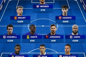 前鋒:芒特(曼聯(lián),2800萬(wàn))、維爾納(萊比錫,700萬(wàn))、哈弗茨(阿森納,6500萬(wàn))