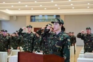 張雨霏作為領(lǐng)誓人,帶領(lǐng)所有參訓的運動員、教練員及輔助人員進行入隊宣誓;運動員代表潘展樂及教練員代表金浩,分別帶領(lǐng)運動員和教練員、輔助人員進行反興奮劑宣誓;軍訓營營長王福利介紹軍訓內(nèi)容,并對全體參訓人員提出紀律要求。