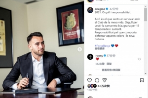埃里克·加西亞社媒曬出續(xù)約照片,并寫道:“2031年,自豪與責(zé)任?!?/p>