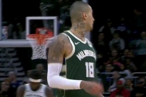 GIF-庫(kù)茲馬反擊背后運(yùn)球過人上籃,被懷特干擾球