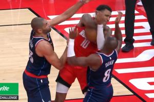 GIF-祖巴茨兩罰中一,小史密斯搶板掄肘犯規(guī)