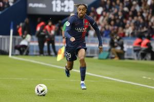 巴黎此前對皇馬首發(fā):1-多納魯馬、25-門德斯、4-貝拉爾多、5-馬爾基尼奧斯、2-阿什拉夫、8-法比安、17-維蒂尼亞、87-若奧-內維斯、7-克瓦拉茨赫利亞、14-杜埃、10-登貝萊