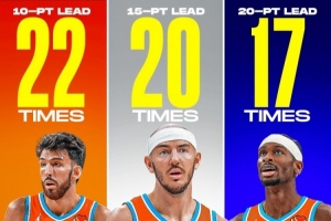 以24勝1負(fù)的戰(zhàn)績穩(wěn)居聯(lián)盟榜首,雷霆不僅僅是贏球,他們每晚都在以游戲般的分差碾壓對手。