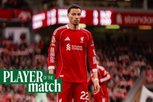 據(jù)賽后利物浦官方消息,本場比賽打進(jìn)兩球的前鋒?;倏水?dāng)選此役隊(duì)內(nèi)最佳球員。