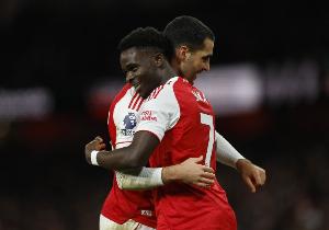狼隊在最后時刻換上替補球員加強攻勢,終于在第90分鐘由馬特烏斯·馬內(nèi)助攻阿洛科達(dá)爾扳平比分。眼看就要丟掉榜首位置,薩卡在補時階段的傳中迫使狼隊后衛(wèi)耶森·莫斯克拉自擺烏龍,最終幫助阿森納驚險取勝。