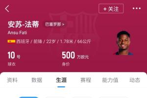 22歲的法蒂上賽季僅代表巴薩出戰(zhàn)11場(chǎng)比賽,共計(jì)298分鐘,0球0助,球員巔峰身價(jià)8000萬歐,如今只剩500萬歐。