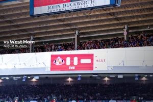 本場比賽桑德蘭主場觀眾席上方的比分牌上并未展示出紐卡的隊徽,而僅僅是以英文visitors(客隊)替代。