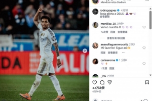 這也是羅德里戈自今年1月首次在西甲破門,賽后他也在個(gè)人社媒曬出本場(chǎng)照片,配文寫道:“榮耀歸于上帝!”