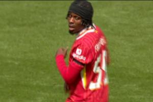 利物浦下半場陣容:56-伍德曼、3-遠藤航、9-努涅斯、17-柯蒂斯-瓊斯、18-加克波、26-羅伯遜、50-本-多克、57-科爾克茲、59-弗林蓬、65-納洛、67-庫馬斯
