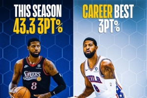 本賽季,喬治三分命中率43.3%,場均出手6次三分,可以命中2.6記。喬治生涯三分命中率38.4%。