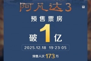 新浪微博消息,據(jù)燈塔專業(yè)版實時數(shù)據(jù),上映前1天,《阿凡達(dá)3》預(yù)售總票房突破1億,預(yù)售人次達(dá)173萬人。
