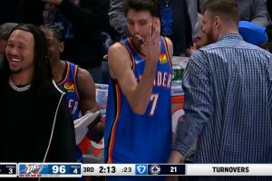 問(wèn)題交給雷霆!戈貝爾關(guān)鍵前場(chǎng)籃板拍出 愛(ài)德華茲撤步三分反超1分