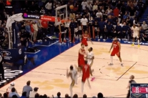 好家伙!阿倫積極拼到前場(chǎng)板 湯姆林虛晃旱地拔蔥單臂炸扣!
