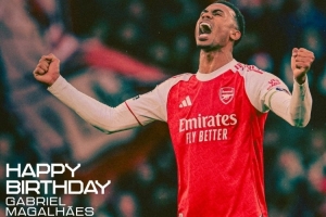 體育資訊12月19日訊 今天是阿森納后衛(wèi)加布里埃爾28歲生日,槍手官方曬圖,為其送上祝福。