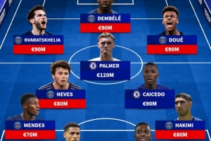 體育資訊7月14日訊 世俱杯決賽巴黎vs切爾西的比賽正在進(jìn)行,德轉(zhuǎn)也盤(pán)點(diǎn)了雙方球員身價(jià)最高陣容,具體如下: