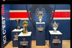 賽后RMC記者ArthurPerrot更新社媒,曬出巴黎本賽季四座冠軍獎杯照片。
