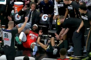 左腿挫傷提前退賽!湖記:東契奇今天的傷病是因與博格丹相撞導致