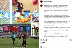 弗拉門戈俱樂部官方社媒也在決賽結(jié)束后第一時間發(fā)文:“弗拉門戈俱樂部感謝并認(rèn)可國際足聯(lián)的工作,尤其是主席因凡蒂諾及其全體高水平的技術(shù)和行政團(tuán)隊(duì),他們以奉獻(xiàn)精神和專業(yè)素質(zhì)為舉辦本屆世俱杯付出了辛勤的努力?!?/p>